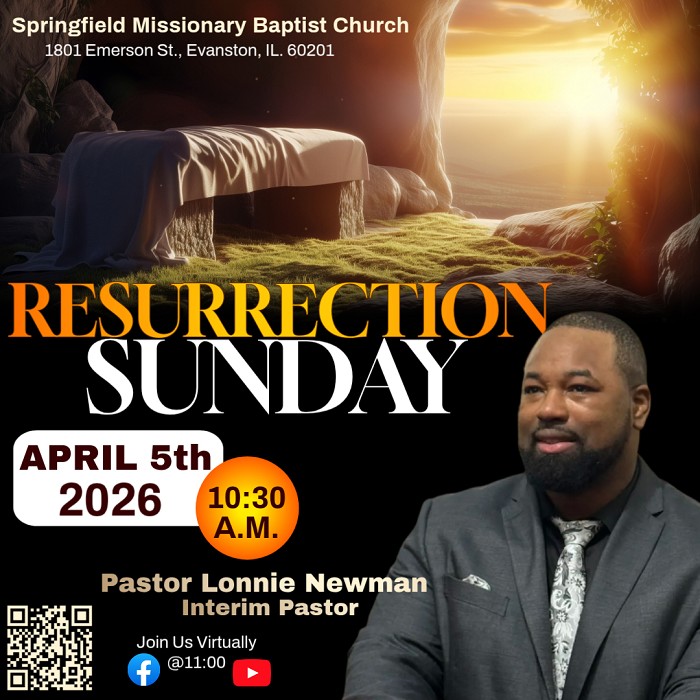 Greetings from Springfield Missionary Baptist Church! Thanks for visiting us online. We hope you feel right at home here and look forward to seeing you at a service soon! ![]() ![]() ![]() Thank you again for visiting, and may God continue to bless you and your family.