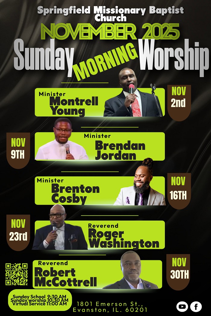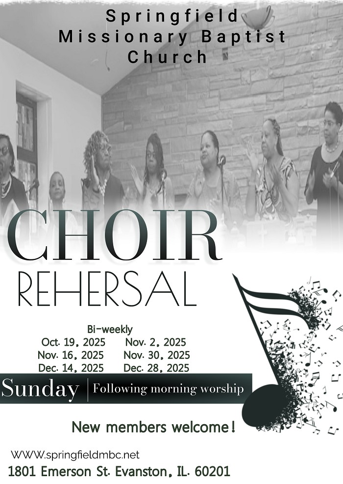 Greetings from Springfield Missionary Baptist Church! We are delighted that you have taken the time to visit our church website, and we hope you will join us in worship soon. ![]() Thank you again for visiting, and may God continue to bless you and your family.